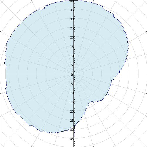 | Proposed parameters including the antenna pattern (Domestic). Limited to 350 W and 49 m towards 220A in Plattsburgh, NY (Az.=110.8°). |